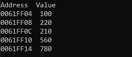 The syntax of course can be shortened to *p++, but this will involve some slight rejigging of the code to print out the correct address value at step i because the updated value of p will be shown if the code is left as is. This code produces the following output: